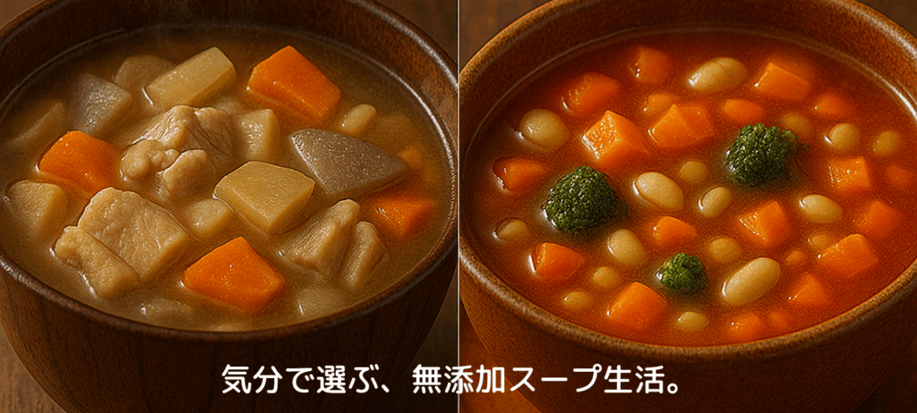 和風と洋風から気分で選べるやさしいレトルトスープ。